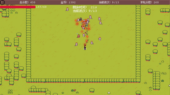 这是一款类幸存者肉鸽游戏,游戏中的战士拿起法杖向敌人开出第一枪,同时这款游戏也是我个人完成的第一款游戏,所以我将游戏命名为 first shot!